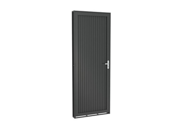 Porta de abrir canelada. Qualificada atendendo a norma NBR 10.821 da ABNT, com padrão de qualidade comprovada. Modelo adequado para ambientes que exijam privacidade visual. Ramassol Fortsol.