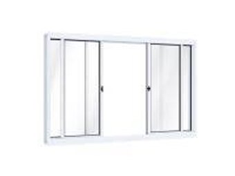 Janela de correr central de alumínio 2 folhas móveis e 2 fixas sem grade. Lucasa Riobras